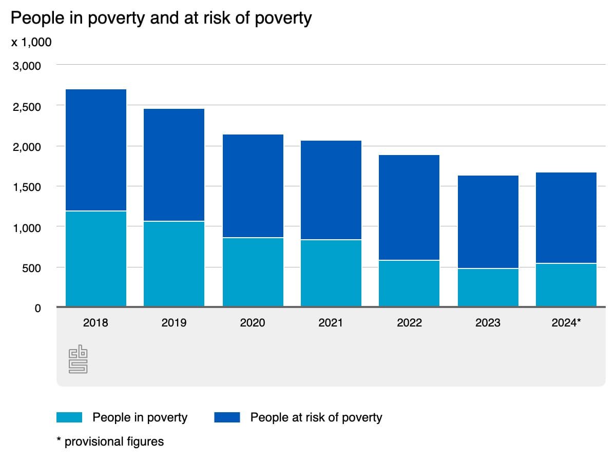 In addition to those already living in poverty, around 1.1 million people were at risk of poverty in 2024, meaning their income was less than 25% above the poverty line.