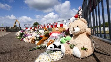 Bloemen en knuffels bij de plek aan de Renselkade waar de auto met Emma (8), Jeffrey (10) en hun vader (67) in het water werd gevonden.