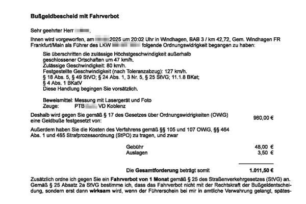 De bestuurder reed in september 2025 met zijn Fiesta over de snelweg bij Windhagen richting Frankfurt. Hij werd geflitst met 131 km/h, waar een maximumsnelheid van 120 km/h geldt. Na correctie bleef hier 7 km/h te hard van over.