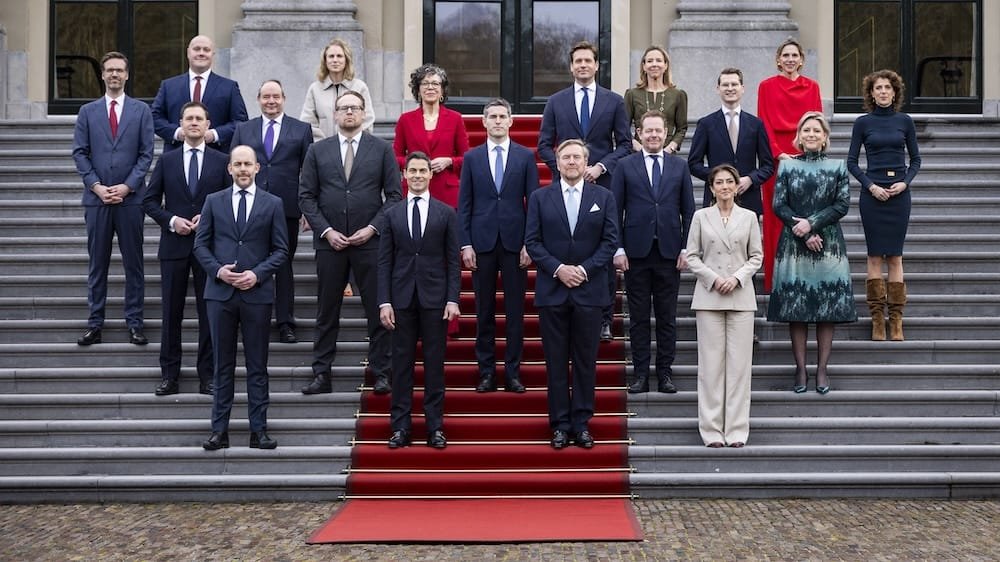 After the swearing in ceremony, the 18 full ministers posed on the steps of the Paleis Huis ten Bosch with king Willem-Alexander for the traditional photo. In the Netherlands, ministers and junior ministers form the cabinet but only full ministers attend the regular Friday meetings with the prime minister.